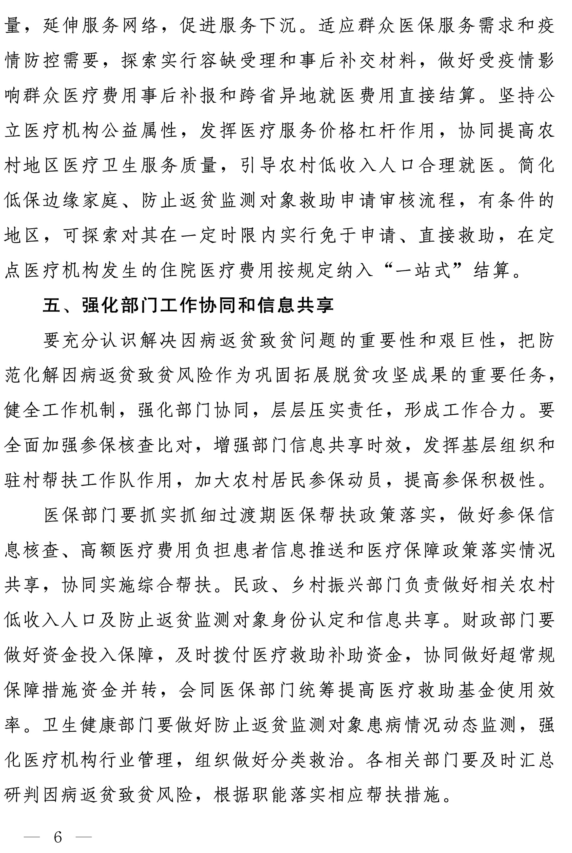 關(guān)于堅決守牢防止規(guī)模性返貧底線 健全完善防范化解因病返貧致貧長效機(jī)制的通知