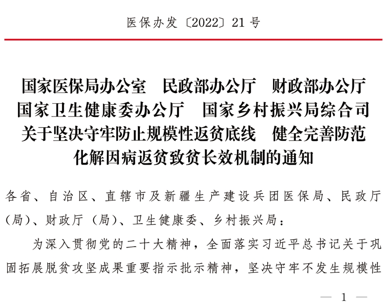 - 名稱: 關(guān)于堅決守牢防止規(guī)模性返貧底線 健全完善防范化解因病返貧致貧長效機(jī)制的通知