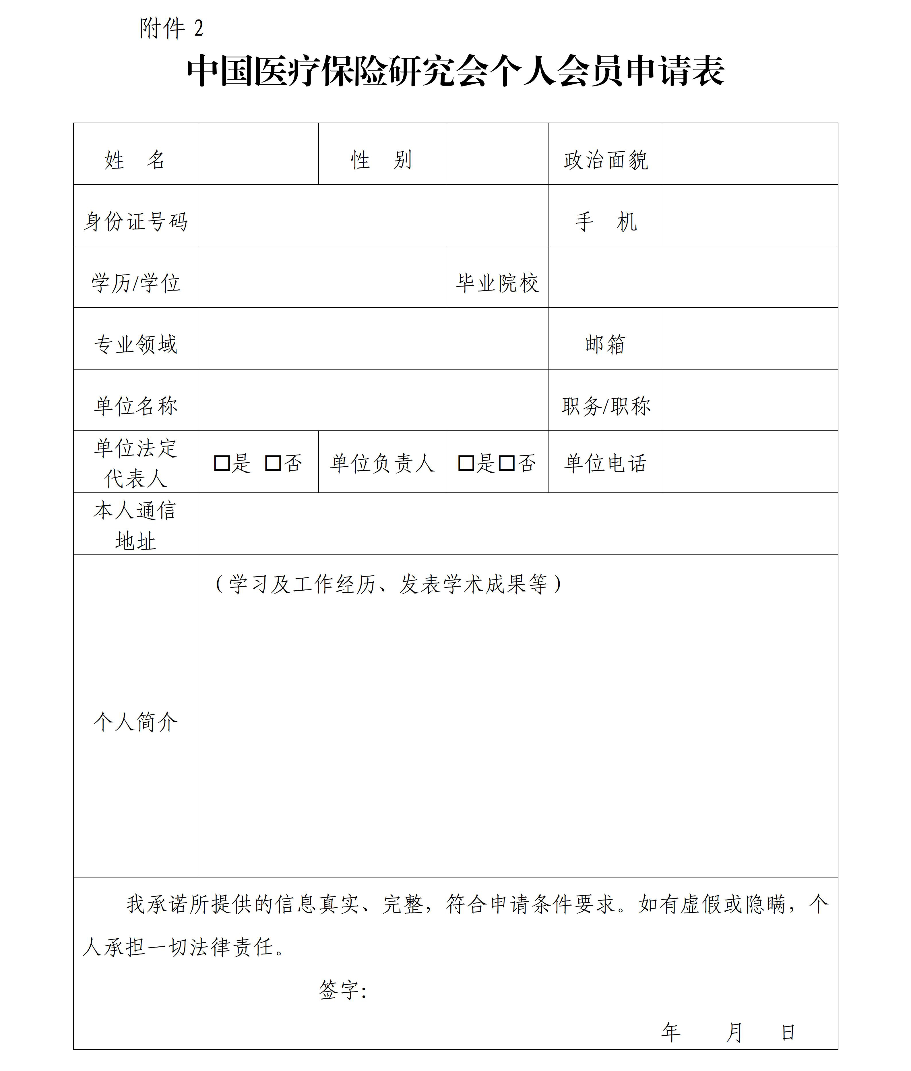 附件2:中國(guó)醫(yī)療保險(xiǎn)研究會(huì)個(gè)人會(huì)員申請(qǐng)表.wps