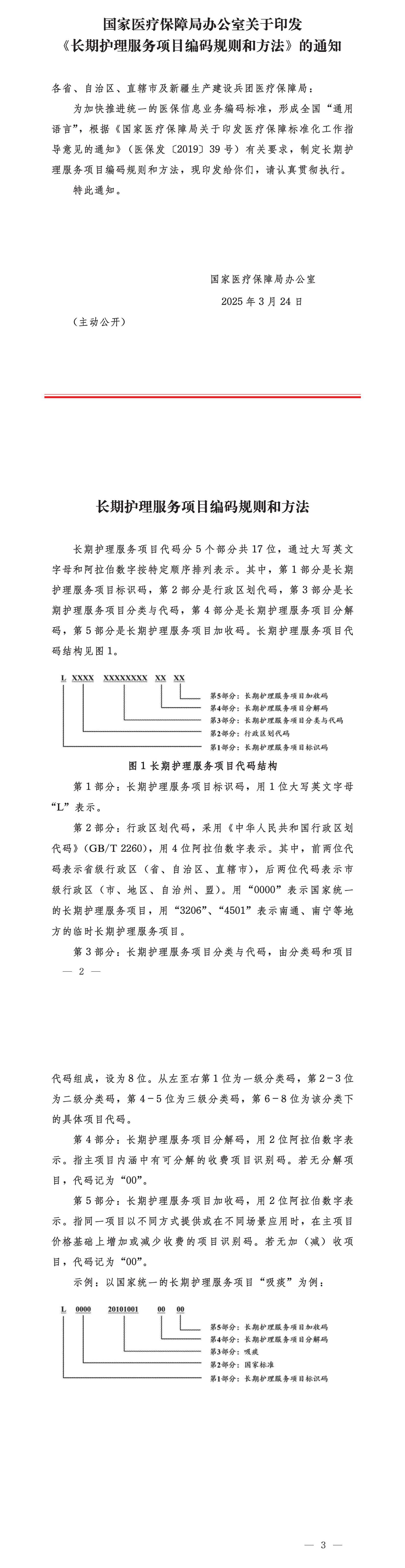 國家醫(yī)療保障局辦公室關(guān)于印發(fā)《長期護理服務項目編碼規(guī)則和方法》的通知