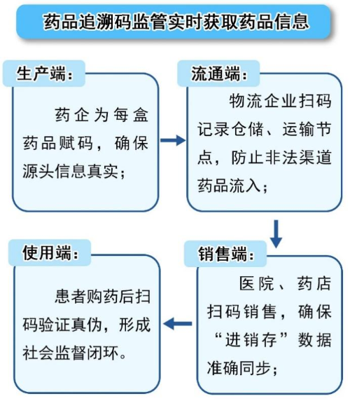 岳倩倩介紹,王先生用手機掃描的藥品追溯碼由20位數(shù)字組成,是每一盒藥品的唯一“電子身份證”,由生產(chǎn)企業(yè)在出廠時賦予,包含藥品從生產(chǎn)、流通到銷售的全鏈條信息。對于每個參保群眾來說,在買藥時用手機登錄國家醫(yī)保服務(wù)APP進行掃碼,就能看到追溯碼內(nèi)的信息,避免買到過期藥或來源不明的藥品。而藥店采集入庫藥品的追溯碼時,也能快速識別出異常批次藥品,在發(fā)藥給病人前就把問題藥品攔截下來,讓患者的用藥安全更有保障。